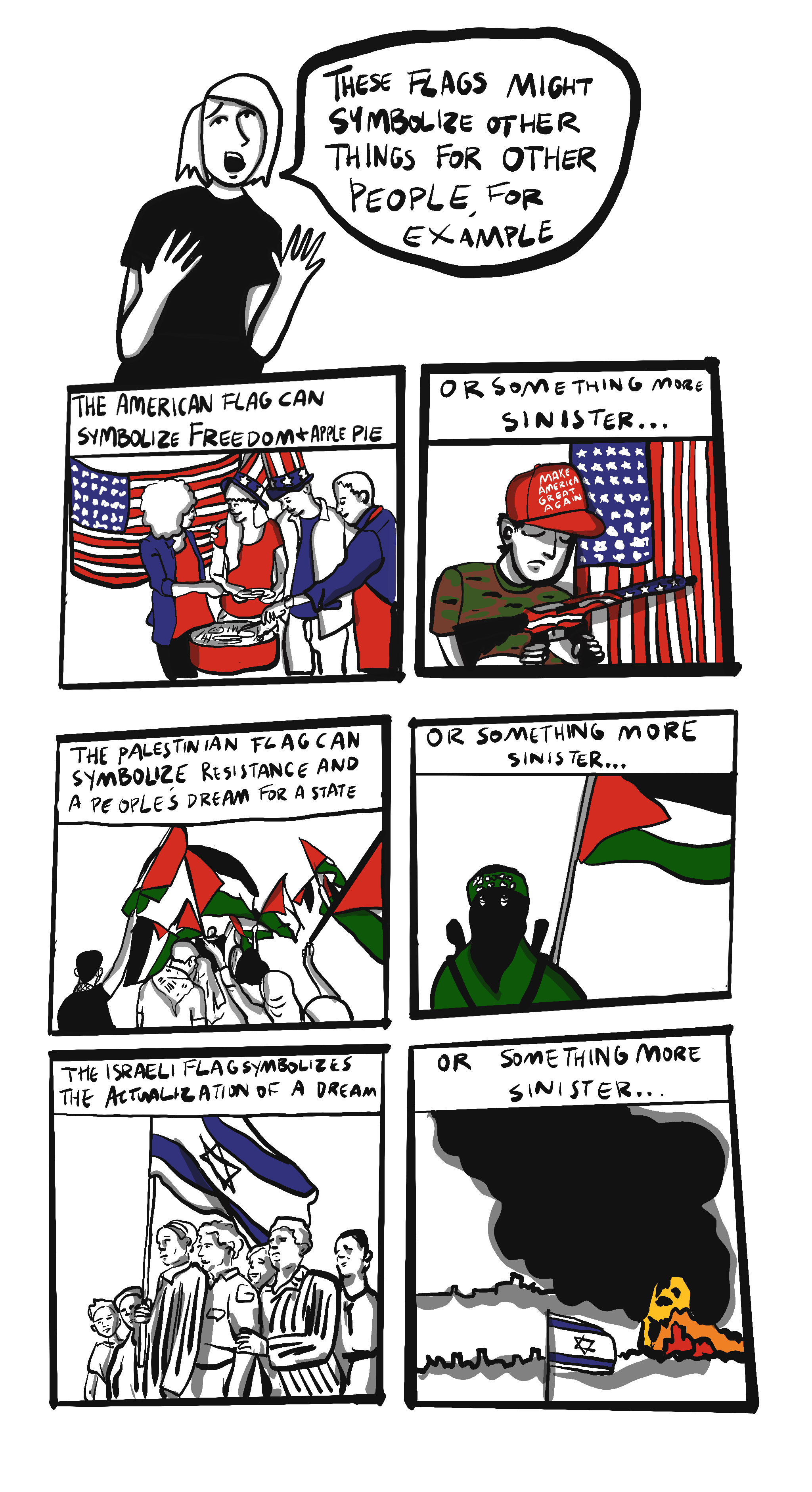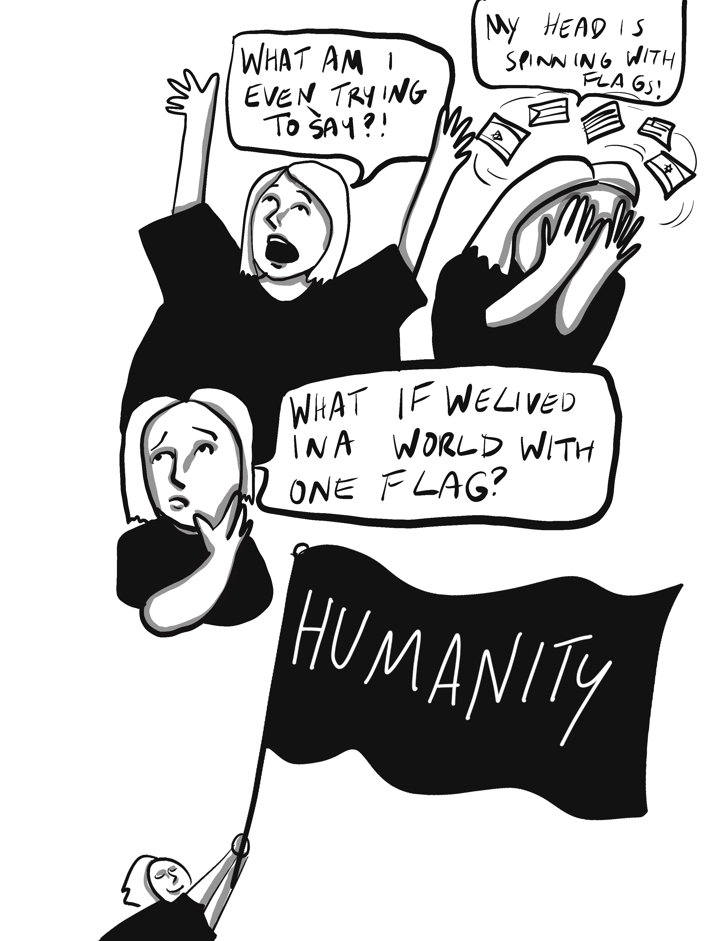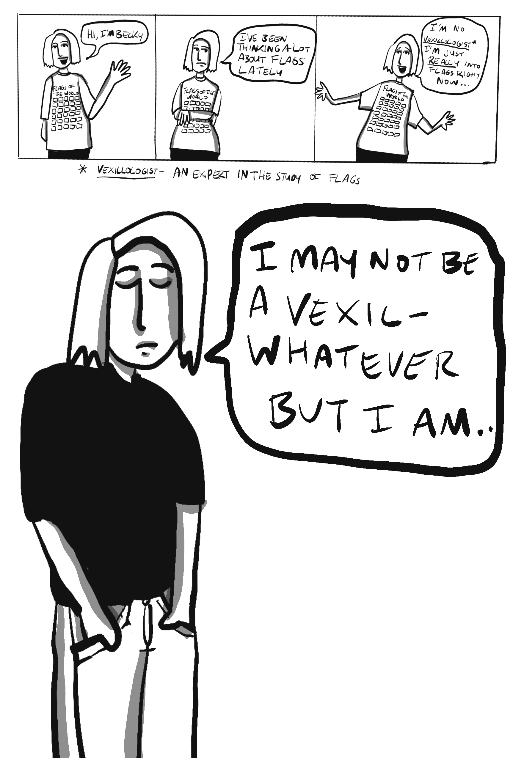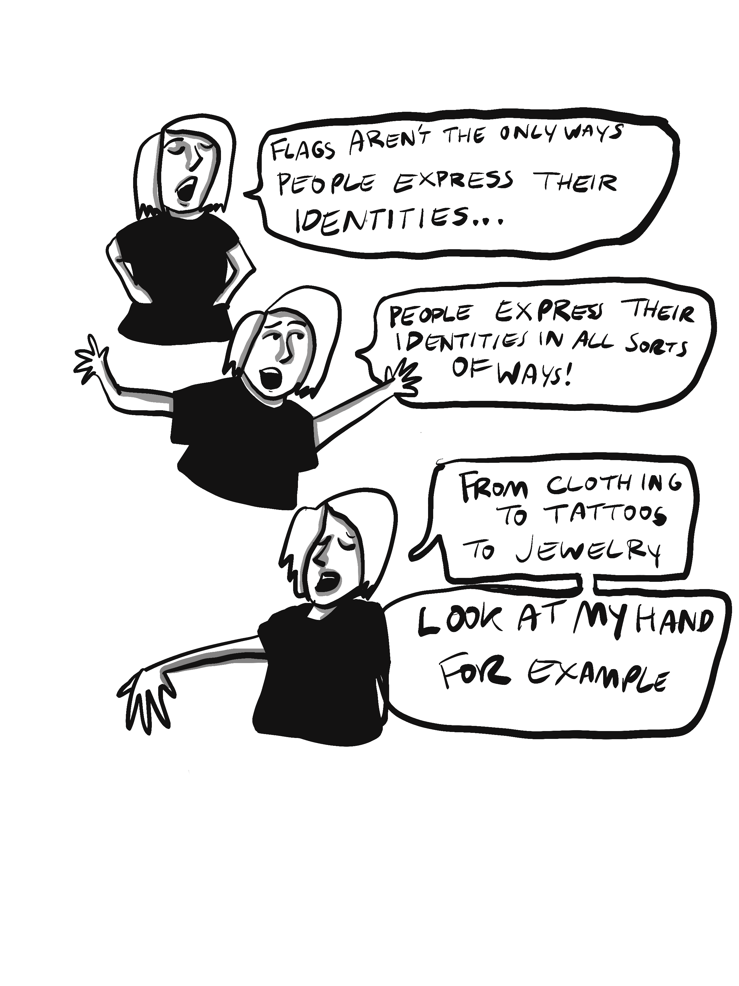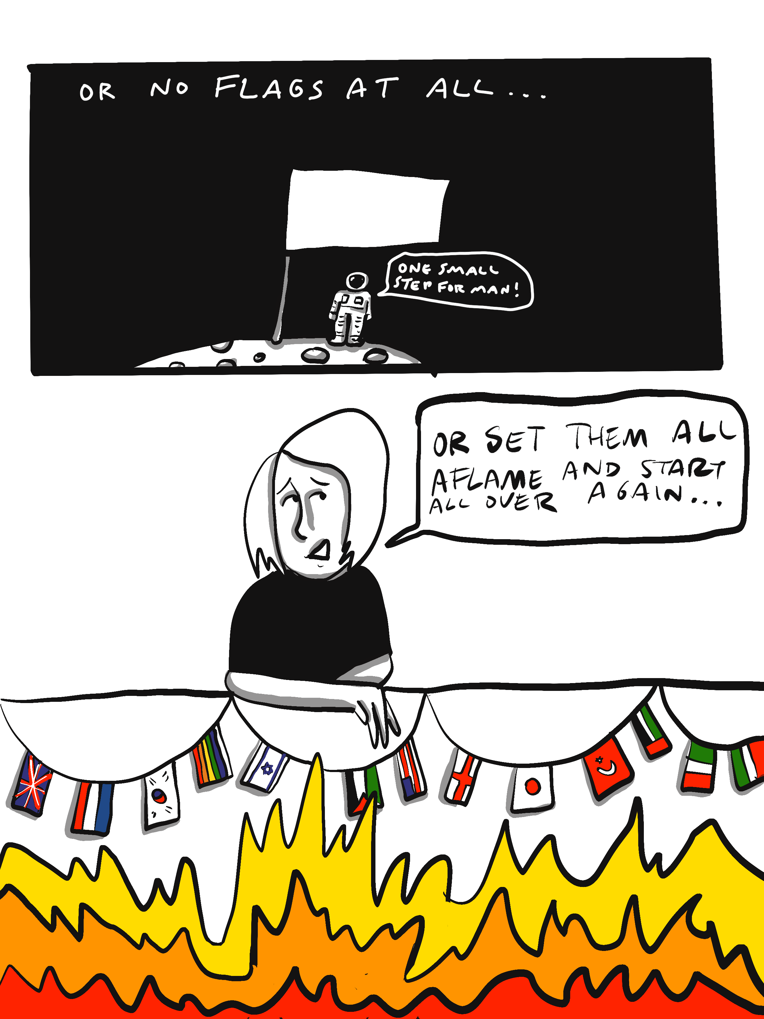 Identities on Fire by Becky Portman A comic zine exploring identity, community and symbols of solidarity through the lens of flags. Interrogating the significance we put on symbols of identity by setting them literally and symbolically on fire.